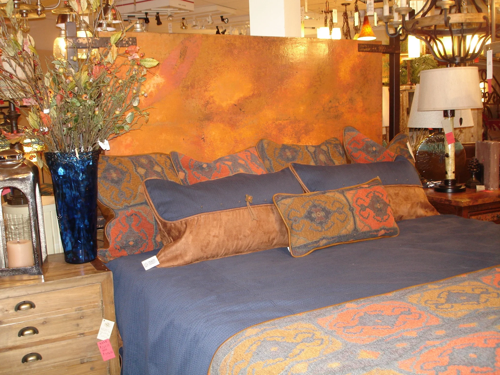 This bed evokes a rustic-industrial vibe with the rich natural element of copper. The dramatic colors in this copper are unique to this builder who uses raw un-purified copper and extreme heat to create this depth of color and texture. Every piece is different and hand made. Not only does this manufacturer provide night stands, dressers and mirrors but they also build this unique copper furniture in various different styles for every room. We regularly have a number of these pieces in our showroom throughout the year and are happy to provide more information and photographs. Just give us a call or send an email!