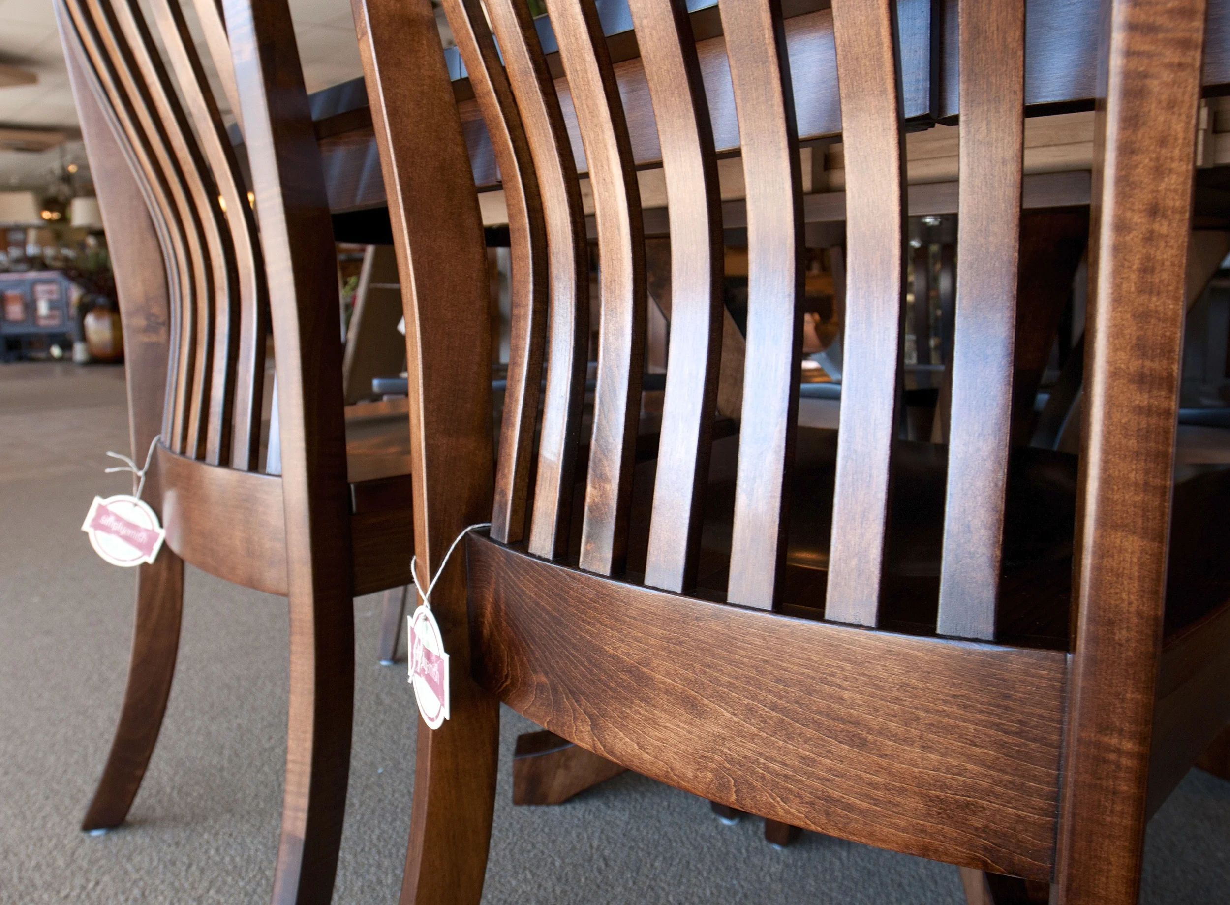 Everything about this beautiful dining set says, "I will last forever" and these chairs are so incredibly comfortable. Only the Amish are able to build furniture of this quality in America. This set is made of solid Maple wood but there are many woods and stain choices to choose from. And that's not all, this particular table has two 12" leaves but it could have had more, or less. It could have also been built at the higher popular "gathering" height. Essentially the choices are limitless when working with our own craftsman.