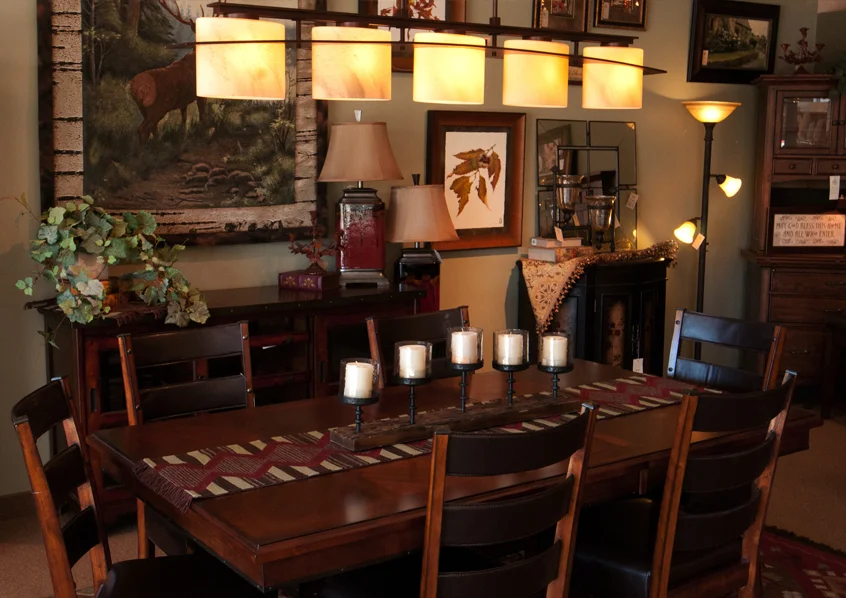 This dining set is a great size, big and beefy legs suitable for large family gatherings! We try to carry quality built pieces that hold up in the dry Arizona climate. The altitude in Flagstaff is equally tough on wooden home furnishings so we choose the pieces we carry very carefully. We want you to be thrilled with anything you find at The Lite Company for generations. This particular dining set was not built in the USA but it is still tough and durable; made of a foreign hard sustainable wood species. We don't see any warping or cracking in this dining set; beauty for a great price. There are other matching pieces too, like a matching server and more, just ask.