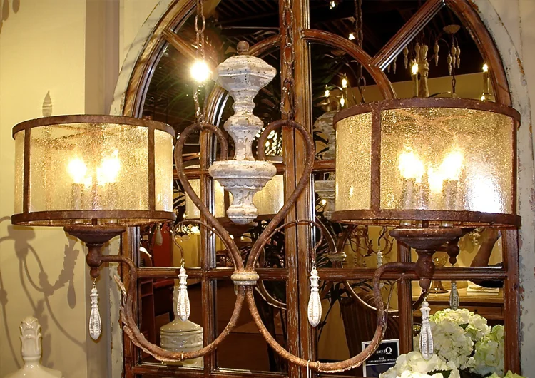 The height of the chandelier should be hung so that the bottom of the chandelier is between 5′ to 6′ off the floor. This will vary depending on the height of the ceiling. On lower ceilings it is usually best to select a chandelier height that allows for at least 1′ of chain or stem length so that the chandelier doesn’t look like it is squeezed into too small of a space. For high ceilings (12′ and above) or a large open dining area a two-tier chandelier might be considered. This will take up vertical space and keep the chandelier from becoming “lost” in a large dining area.